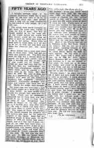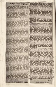 In the fourth installment of his “Fifty Years Ago” column, Burton Coon reflected, “Happiness springs from contentment. Contentment depends upon the adjustment of one’s self to one’s environment. And so of course the environment must be congenial. It was so with the farmer of fifty years ago. A man of simple tastes, he had settled down to enjoy the simple life, with his family around him.”