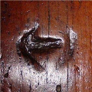 Previous Image Next Image image095 Hoag Interior, Mark in floorboard, suggests original use for British Navy