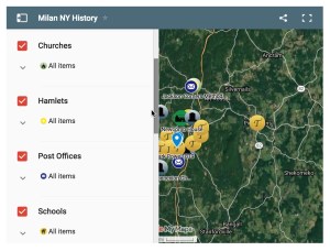 To choose from the different “layer” options such as schools, cemeteries, etc you can either click on the top left of the map box as you see it (first two images below) or you may click on top-right “full-view” image and the options will show up automatically when enlarged